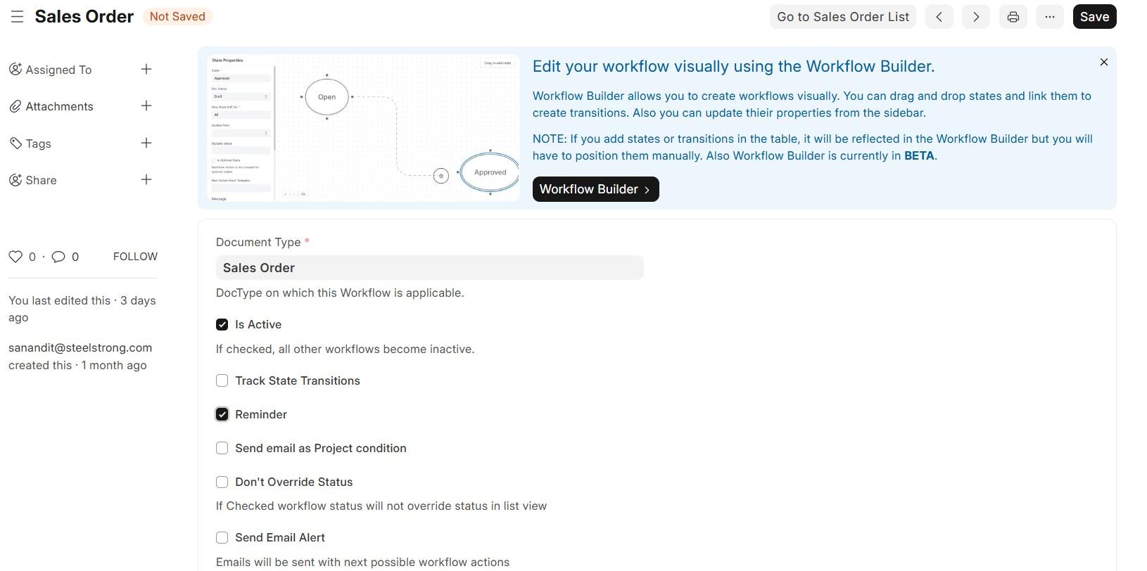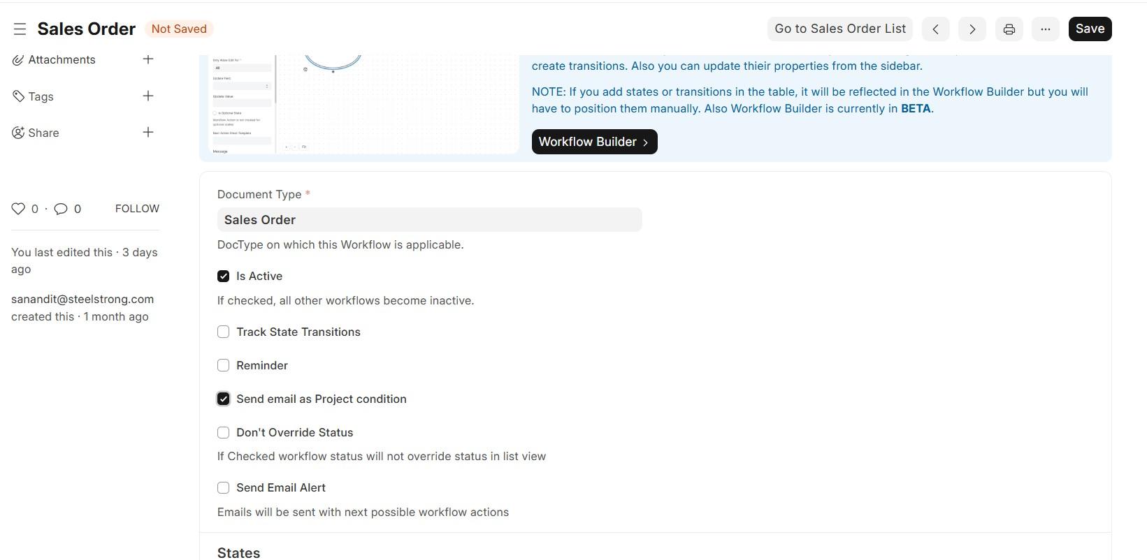 These indicators appear in a checkbox section within any DocType that has workflow states enabled, providing immediate visual feedback on document status.
