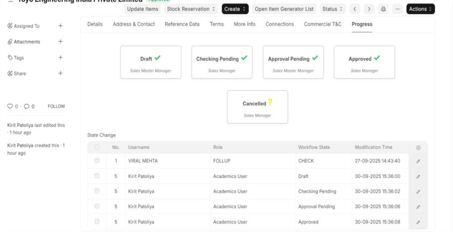 This workflow transition system provides comprehensive tracking, automated notifications, and detailed reporting to ensure smooth document processing and accountability across the organization. By leveraging role-based permissions and project-specific access controls, the system ensures relevant stakeholders stay informed while maintaining data security.